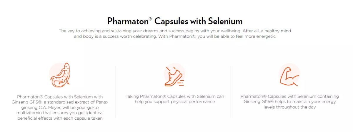 Pharmaton capsules contain a balanced combination of G115 concentrated Ginseng Extract, Multi-vitamins and Minerals to enhance mental and physical performance.