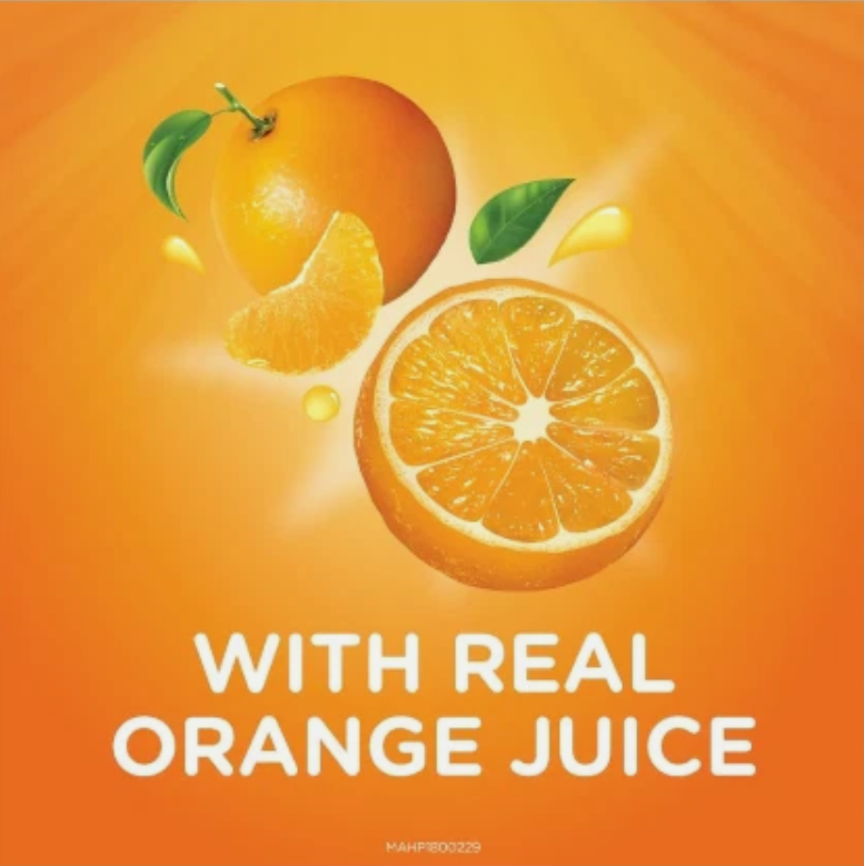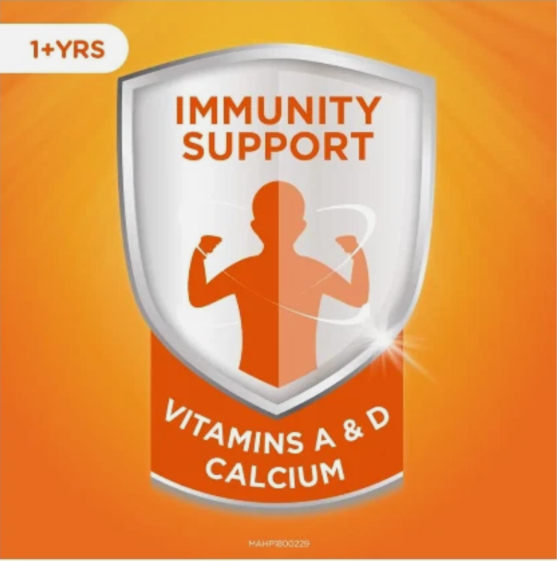 Vitamin A 850 I.U., Vitamin D 85 I.U., Calcium Hypophosphite 414mg, Potassium Sorbate 0.100% w/w in a base containing cod liver oil and orange juice.