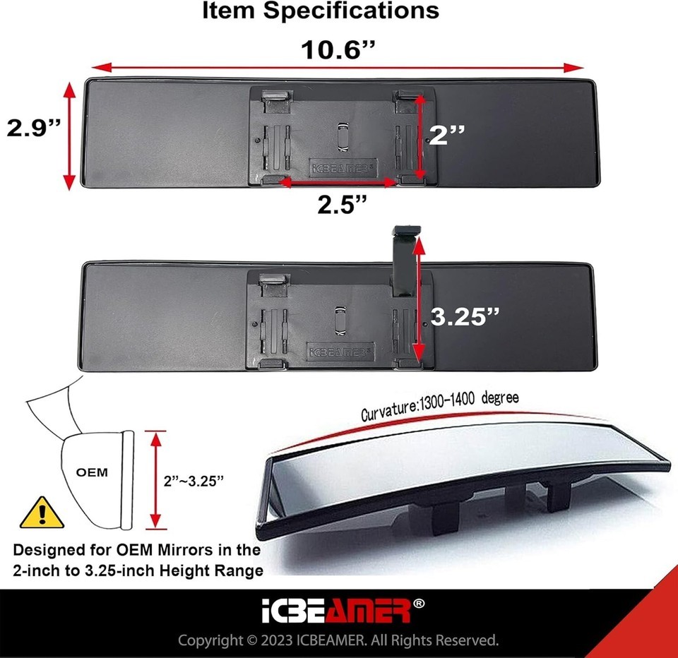 - 10.6'' Panoramic Auto Rear View Mirror - Enhanced Clarity & Safety Features