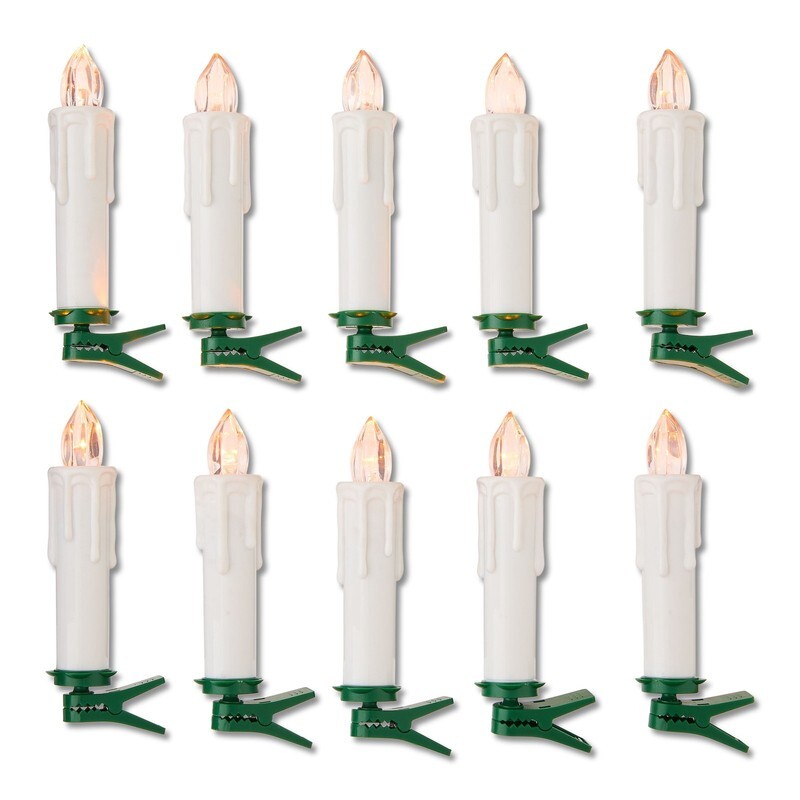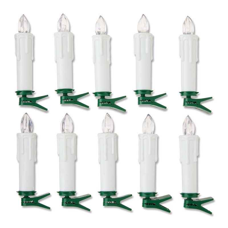 10 Count Battery-Operated White Cordless LED Clip Christmas Candles Ornament with Remote