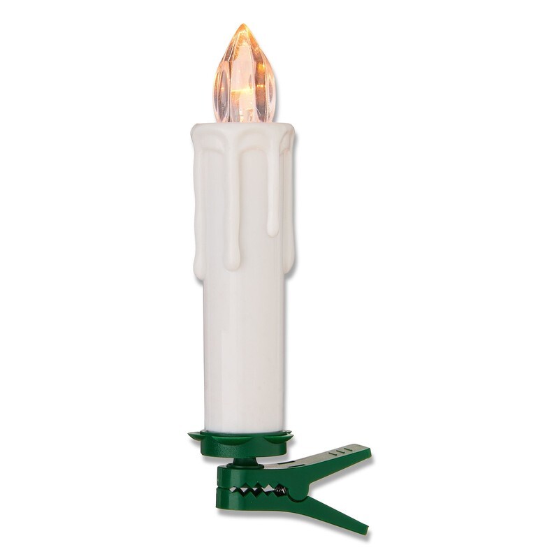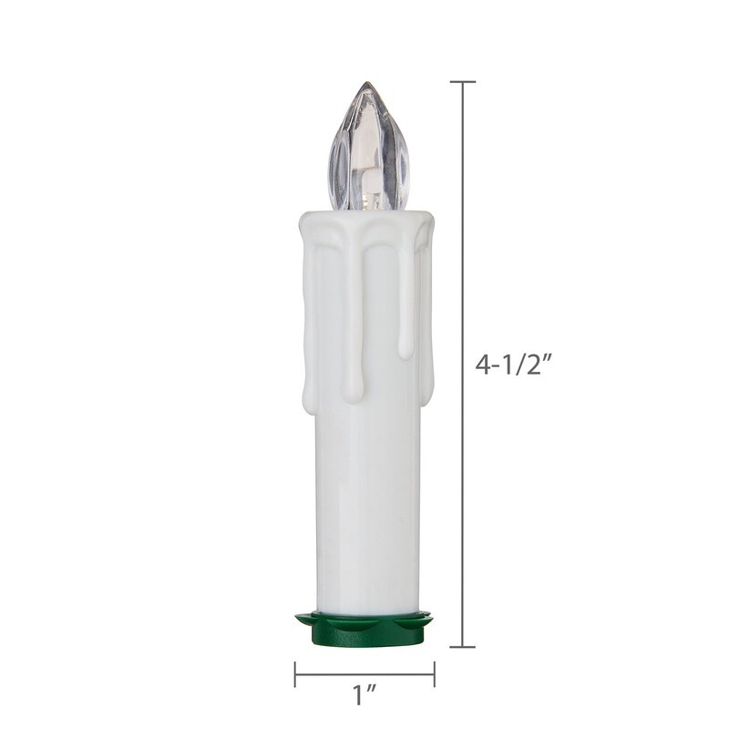 Holiday Time Battery-Operated White Cordless LED Clip Christmas Candles with Remote, 10 Count Includes 10 cordless flameless candles with clips for easy placement Soft yellow LED glow creates a warm, inviting ambiance Perfect for Christmas trees, mantel garlands, wreaths, and centerpieces Remote control included for convenient operation Built-in timer with 6 hours on/18 hours off cycle Battery-operated design for safe, mess-free decorating
