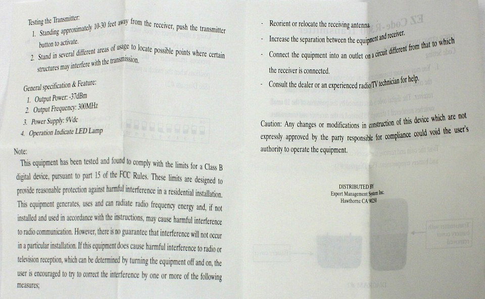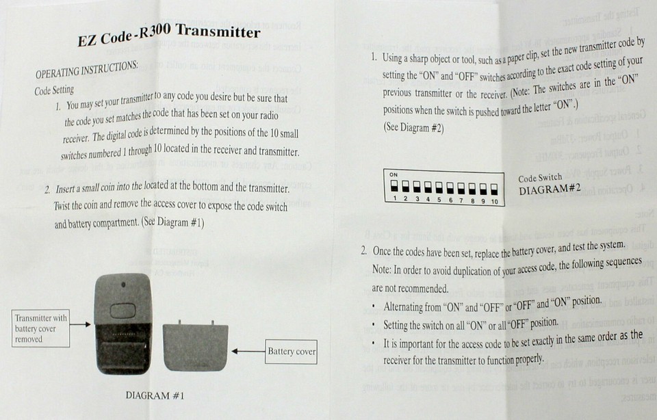 - 10 Digit Pins EZ Code Remote Control Garage Door Gate Opener Transmitter 300 MHz