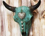 - 10"L Southwest Steer Bison Bull Cow Skull Turquoise With Scroll Heart Wall Decor