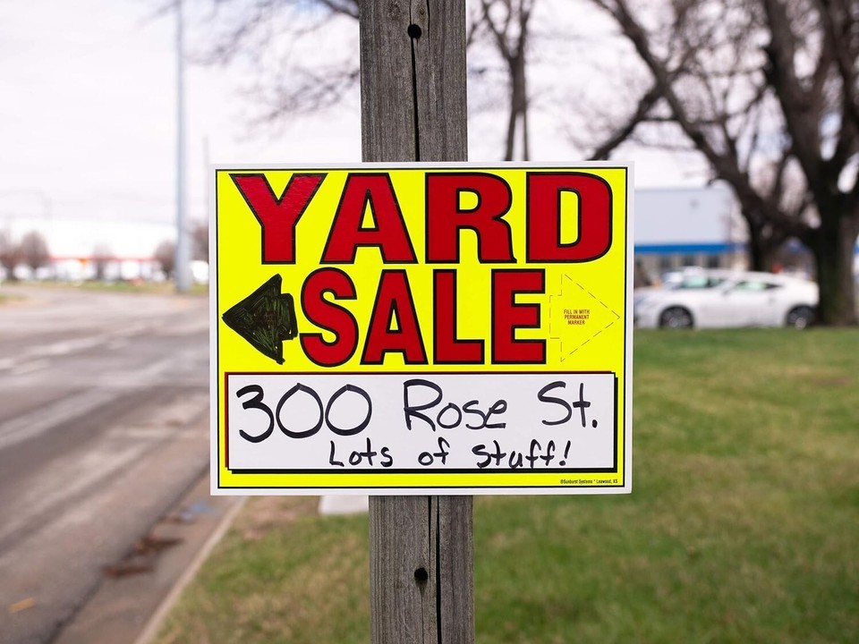 - 10) Large Label (3) All-Weather Yard Sale Signs, (200) Stickers 11 x 15 Inch