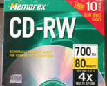 - 10 PACK - Memorex CD-RW 4X 80 Min 700 Mb Rewritable CD in Slim Jewel Case Lot