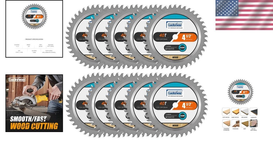 - 10-Pack 4-1/2 Inch 40T Circular Saw Blades - Tungsten Carbide Precision Cutting