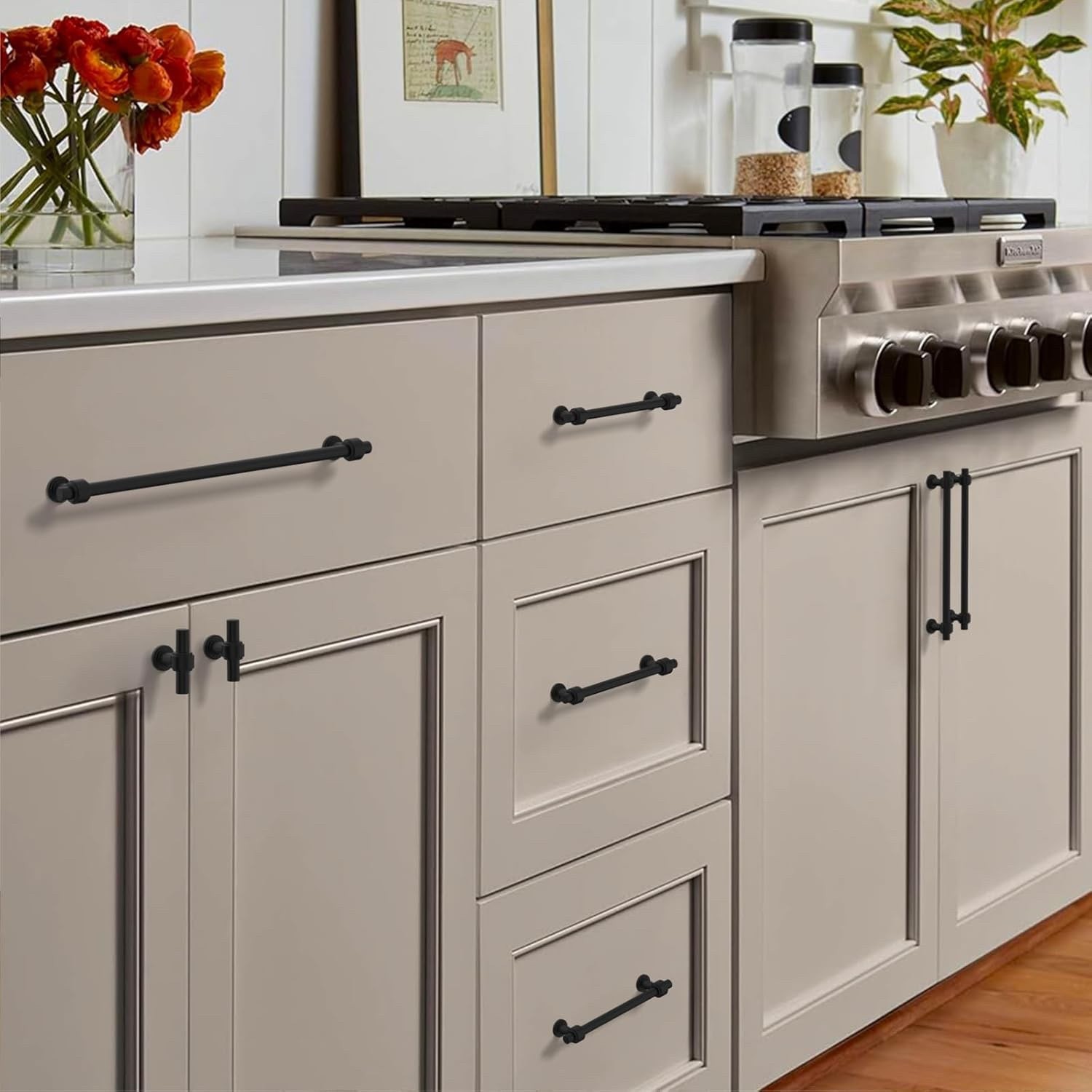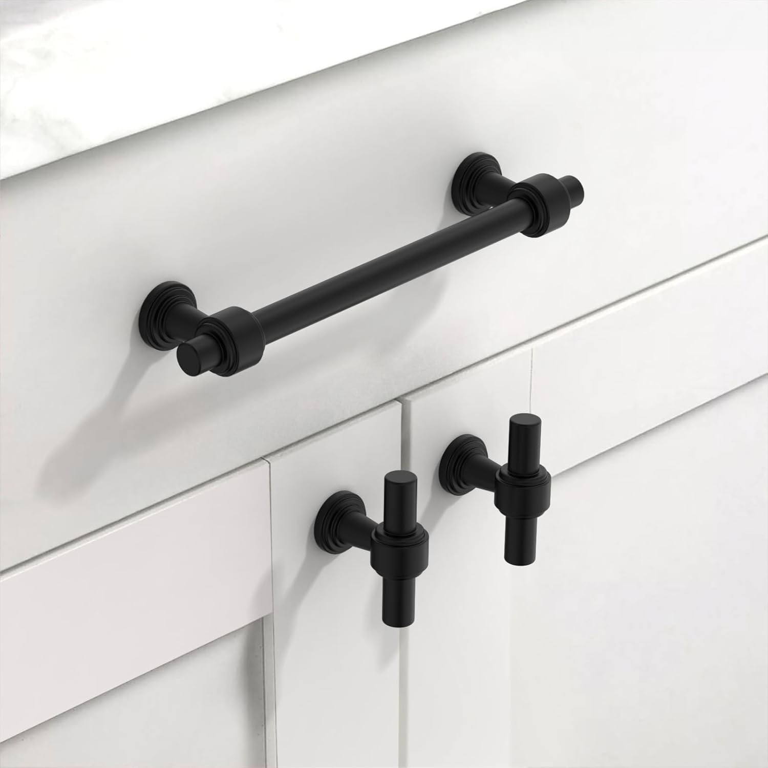 ?Matte Black Cabinet Pulls Description??? Upgrade your kitchen hardware with premium matte black cabinet handles made of durable aluminium and zinc alloys. These rust-proof, anti-corrosion, non-toxic heavy-duty solid cabinet pulls feature a scratch-resistant, matte gold finish that?s easy to clean and install. Perfect for modern, farmhouse, or contemporary kitchen designs.