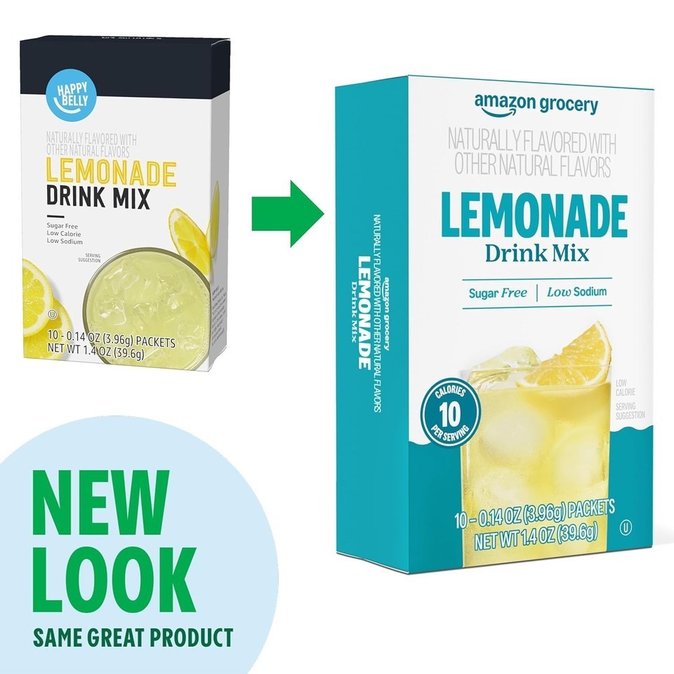 10 Packets Lemonade Sugar Free Low Sodium On-The-Go Powdered Drink Mix, 1.4 oz, Packaging May Vary (Previously Happy Belly)