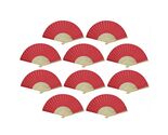 - 10 RED FANS Folding Paper Hand Fan Pocket Wedding Plain Bamboo Set Lot Ten Pcs