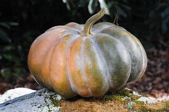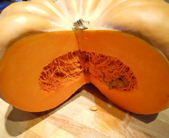 In France the cut wedges are sold in supermarkets as well as farmers markets. The deep orange flesh is a favorite for chefs due to its fine flavor. Very decorative. Long shelf life lasts throughout winter; an excellent storage variety! The finest "Cheese Wheel" type Pumpkin/Squash for eating that can be found! Flat shape and is about 6" thick and average about 15" across makes it terrific for baking!