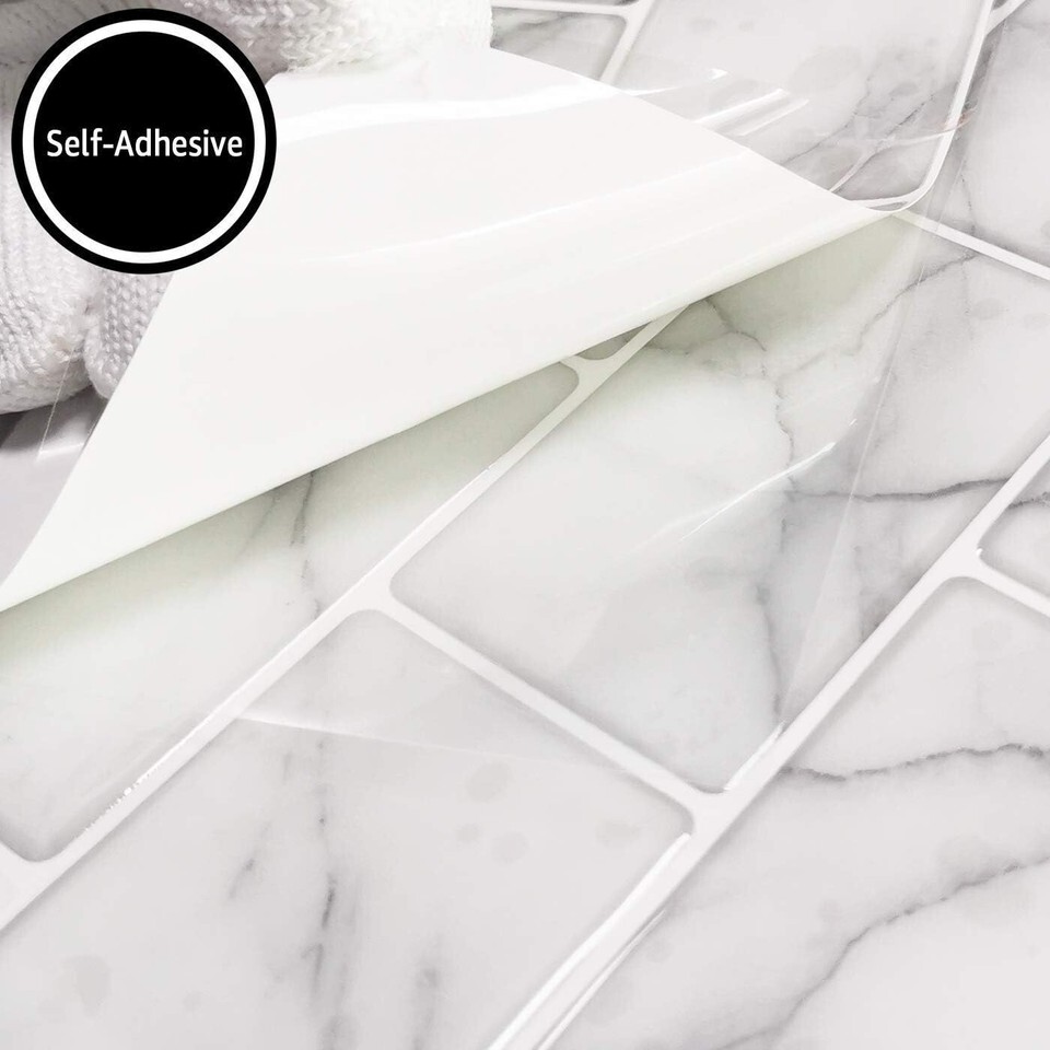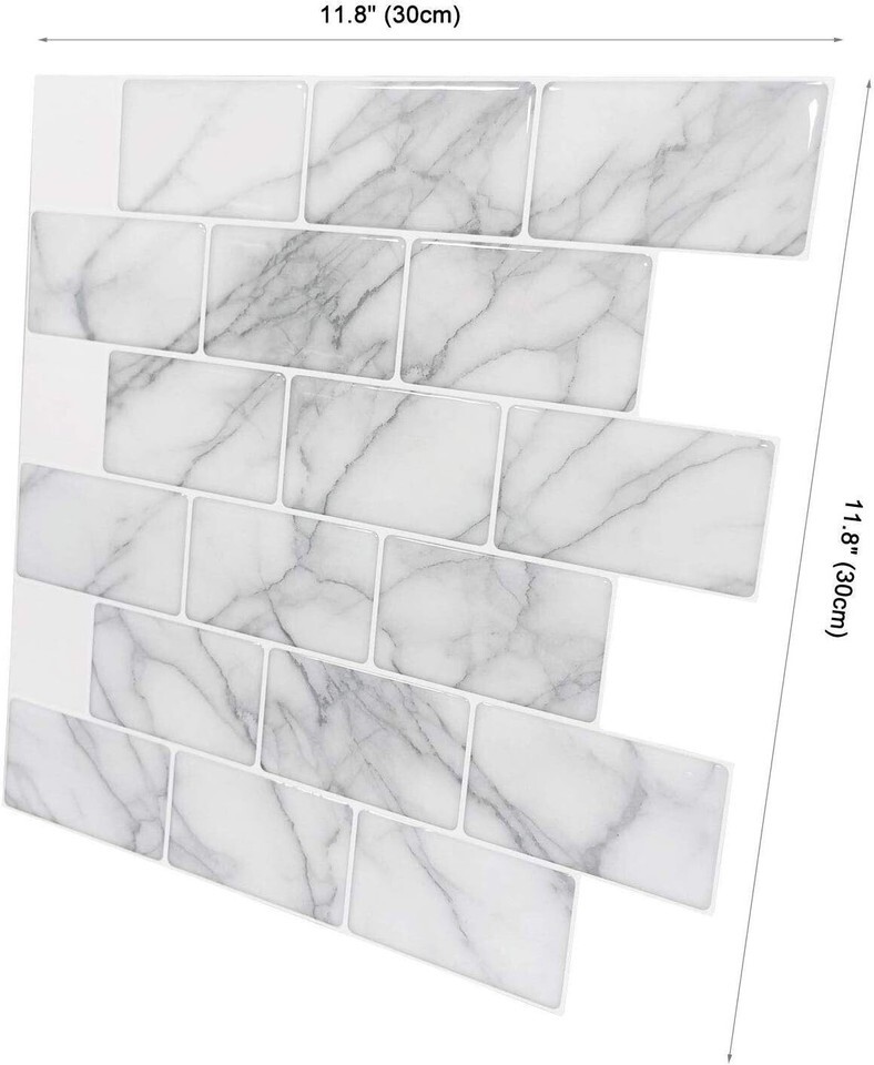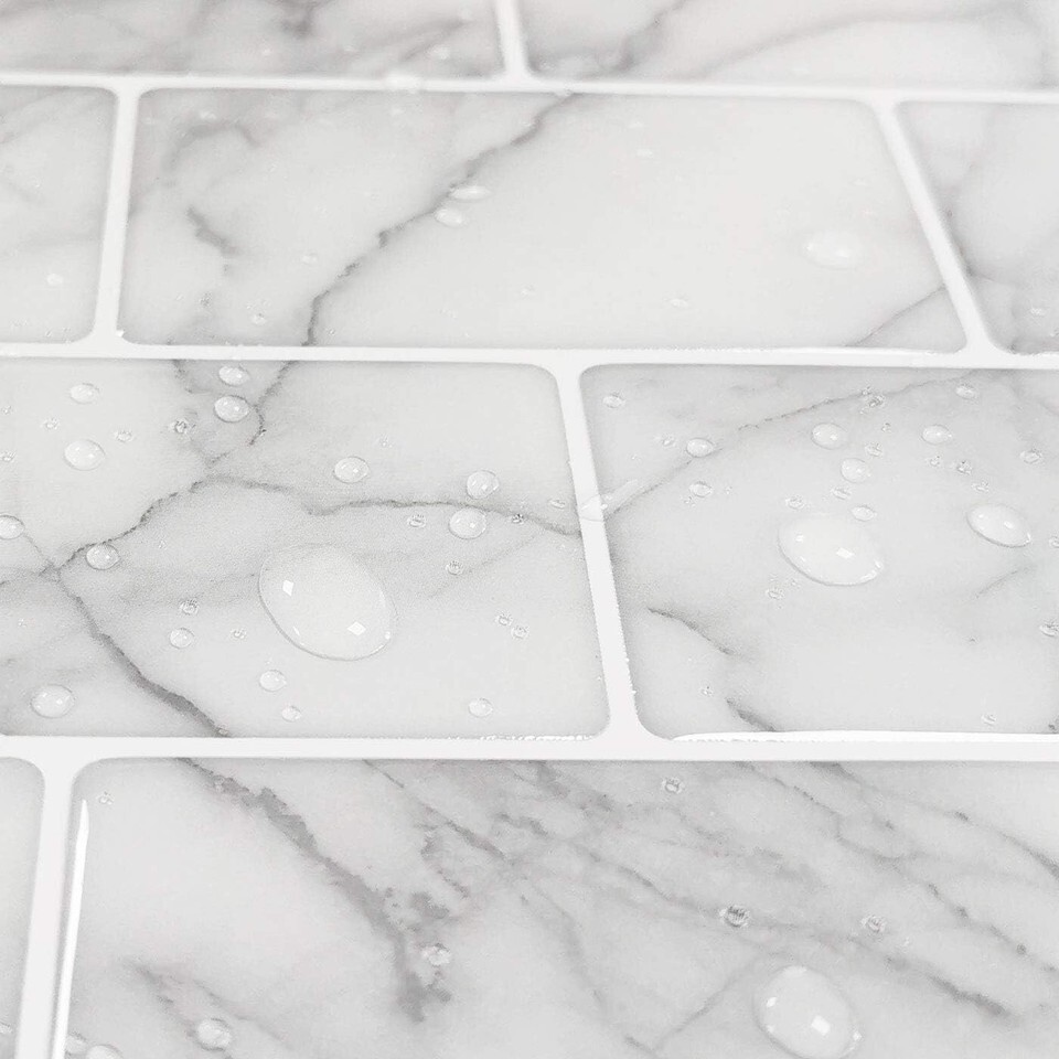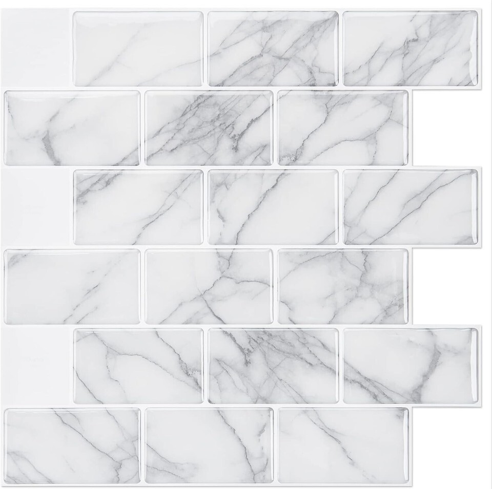 - 10-Sheet Peel and Stick Grey Marble Backsplash Tile - Elegant DIY Decor 12"x12"