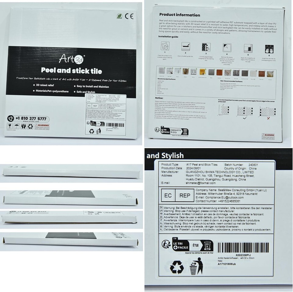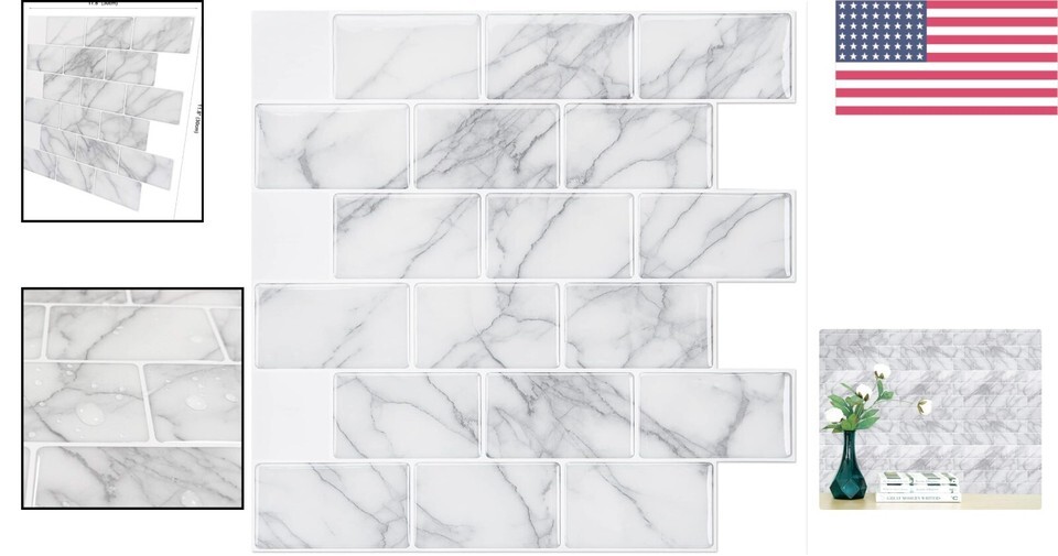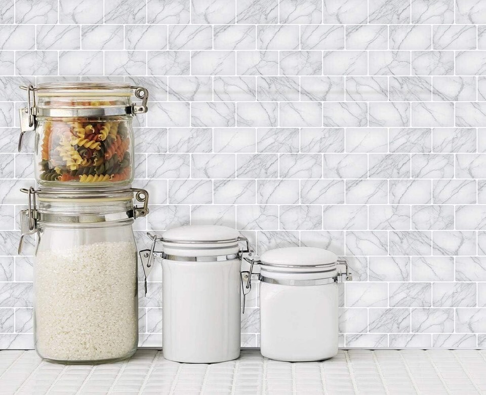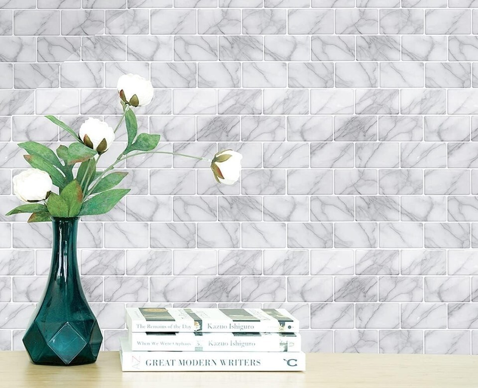- 10-Sheet Peel and Stick Grey Marble Backsplash Tile - Elegant DIY Decor 12"x12"