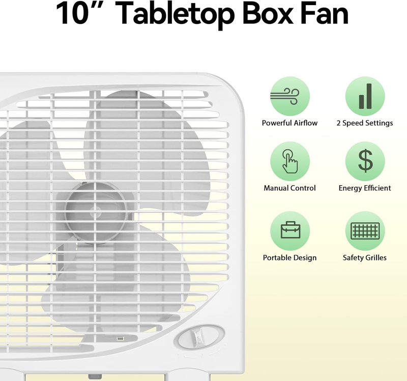 10" Tabletop Box Fan for Bedroom, 2 Speeds, Quiet Table Fan with Strong Airflow,