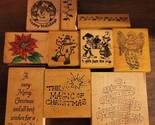 - 10 Vintage Christmas Holiday Rubber Stamp Lot Many Large Stamps Angel Snowman