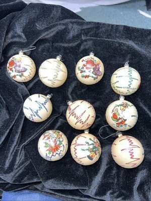 - 10 Vintage Santa Christmas Ornaments Decal Art snowman Glitter 2.25" Balls Italy