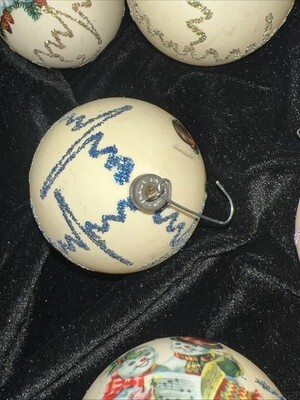 10 Vintage Santa Christmas Ornaments Decal Art snowman Glitter 2.25" Balls Italy