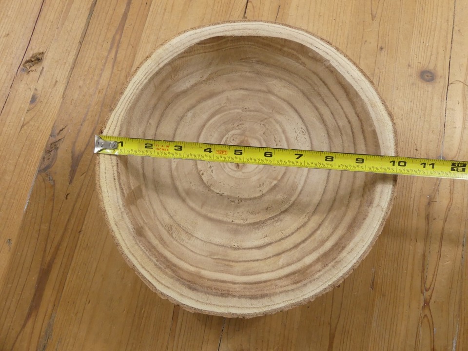 BOWL MEASURES APPROXIMATELY 10 1/2" X 10 1/2" WIDE! LIVE EDGE ONE THE OUTSIDE WITH SOME BROKEN AWAY