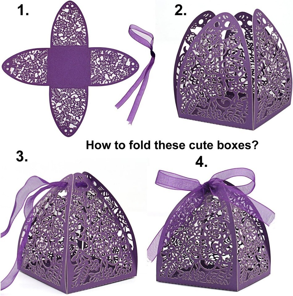 Each box can be filled with your favorite treats: candy, chocolate, or even jewelry to surprise your guests.