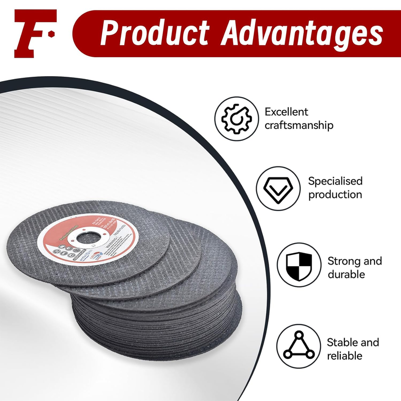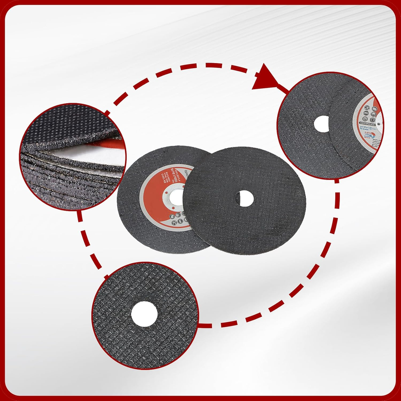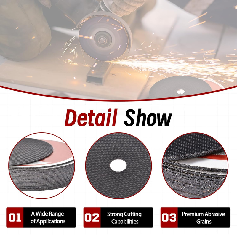 The cut off wheel is made of premium aluminum oxide abrasive grains and 0.04in/0.045in/0.0625in extremely thin thickness, it can be lessing rework and higher efficiency. These discs are engineered for rapid cutting performance and extended service life.