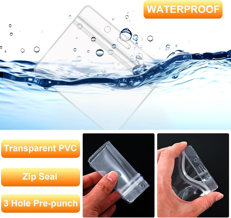 Simple and useful: the ID badge lanyard is designed with a resealable zip lock that is easy to open and close, clear plastic horizontal name holder protects important paper badges or cards and keep them clean and dry, the lanyard can keep name card secure