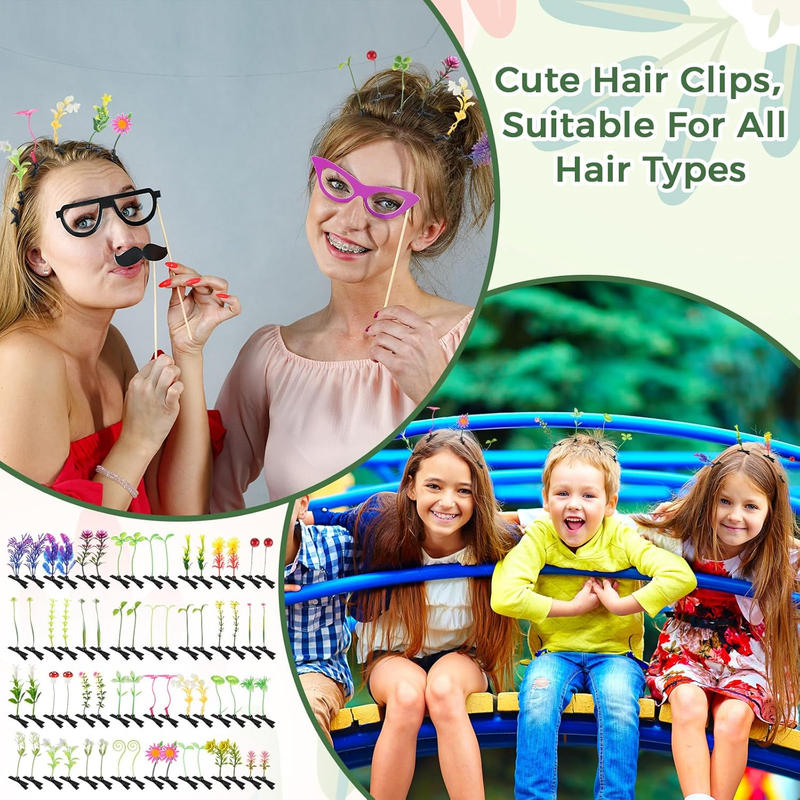 - 100 Pcs Rave Sprouts Bean Sprout Funny Hair Clips Mixed Style Plant Hairpins Hai