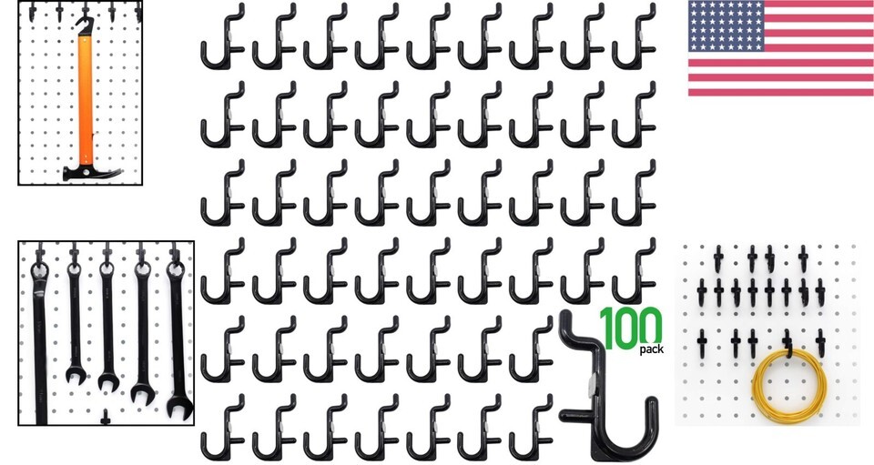 - 100-Piece Black Pegboard Hooks Kit - Durable J Hook Assortment for Storage