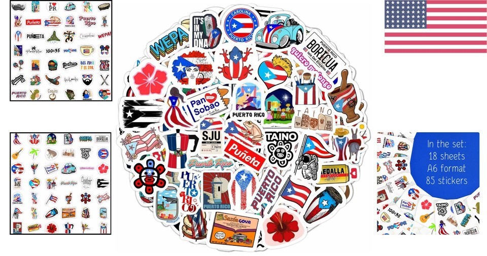 100 Premium Puerto Rico Souvenir Stickers - Fade Resistant Glossy Finish