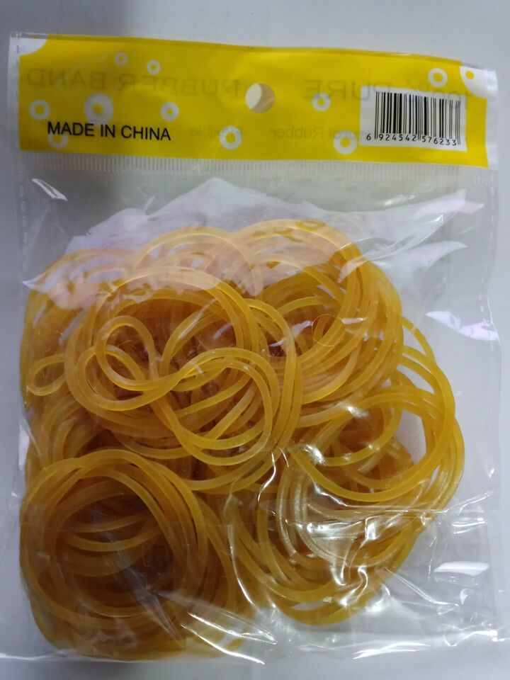The product is a bundle of 100 gold rubber bands, each measuring 1.5 inches in size. These elastic stretchable rubber bands are made of non-latex material, providing a secure and durable hold for various office and industrial uses. The custom bundle is manufactured in China and does not include any modified items. Ideal for businesses and professionals seeking reliable and high-quality rubber bands for their everyday needs.