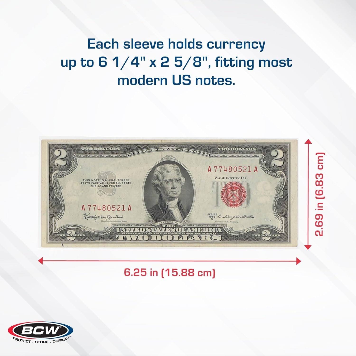 These Currency Sleeves are an acid free, archival quality product made of crystal clear soft polypropylene.
