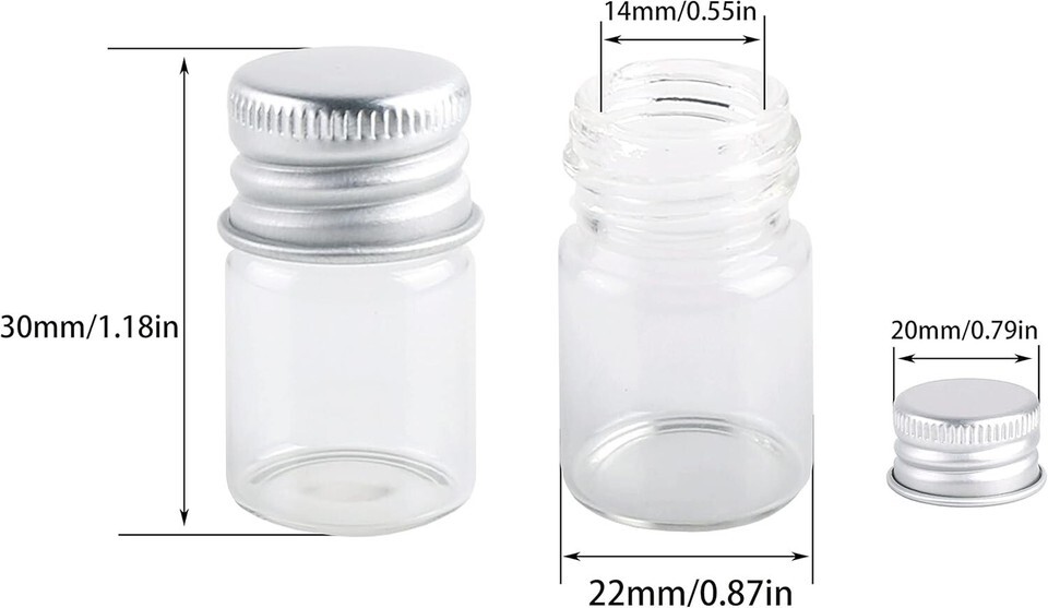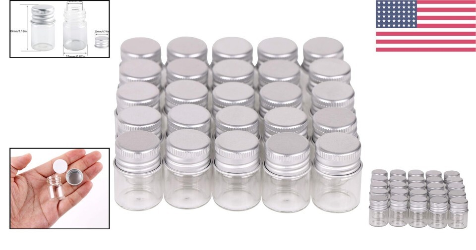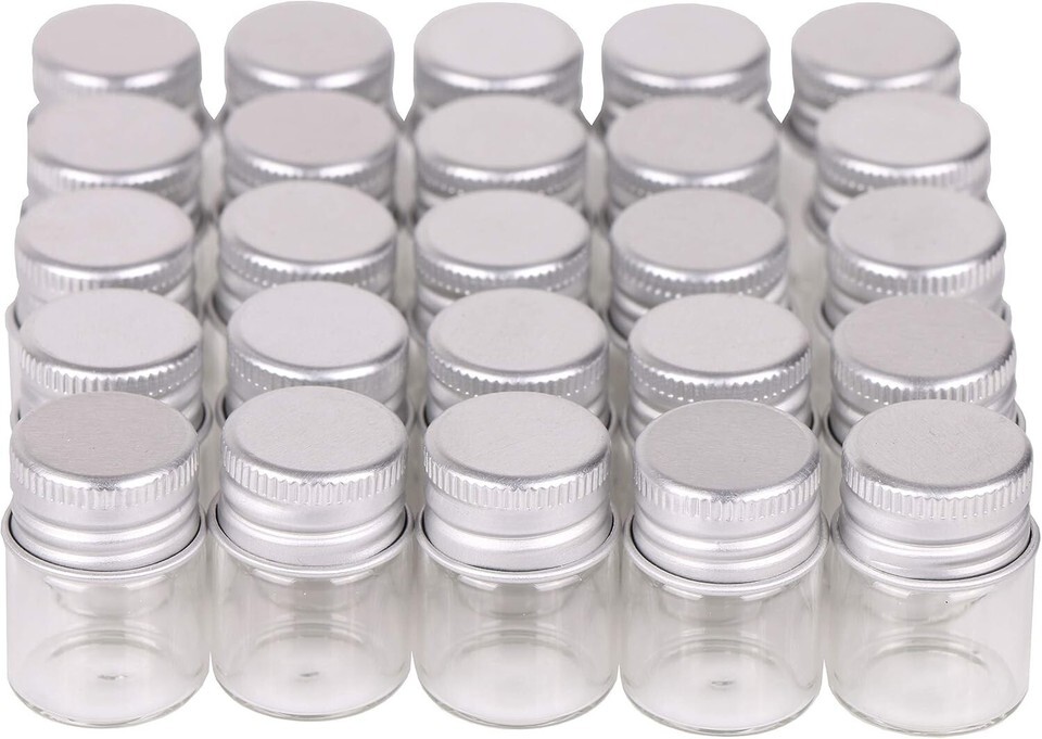 - 100 Sets of 5ml Clear Glass Bottles with Aluminum Screw Top Lids for Crafts