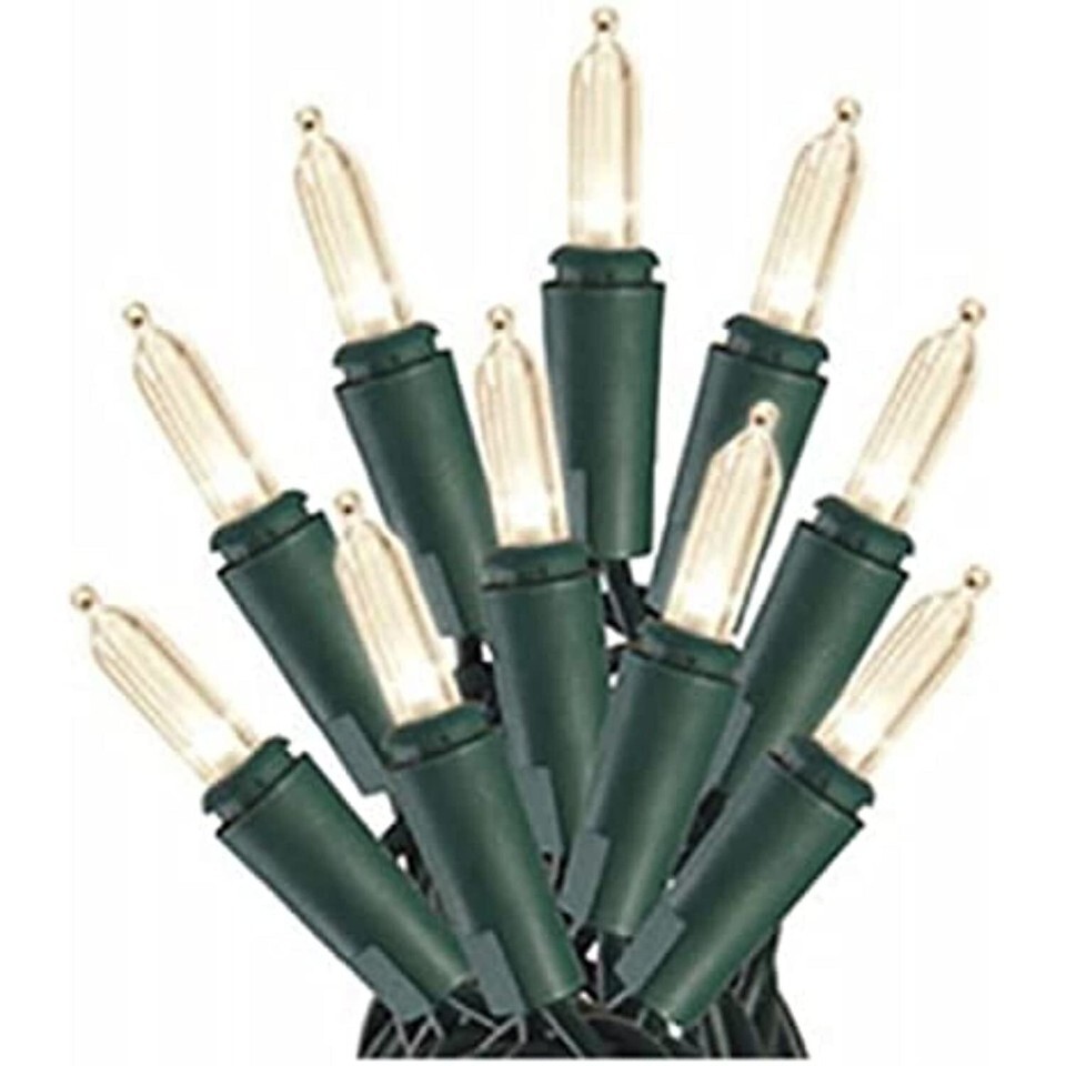 SYLVANIA 100 Lt STAY-LIT Warm White LED Set. Green Wire. Traditional Glass Look bulbs. 12 in. Lead, 4 in. spacing, 3 in. End. Indoor/Outdoor. Color Box. UL Listed. Includes 2 Spare bulbs and 1 Spare fuse and 2 Spare Reflectors.