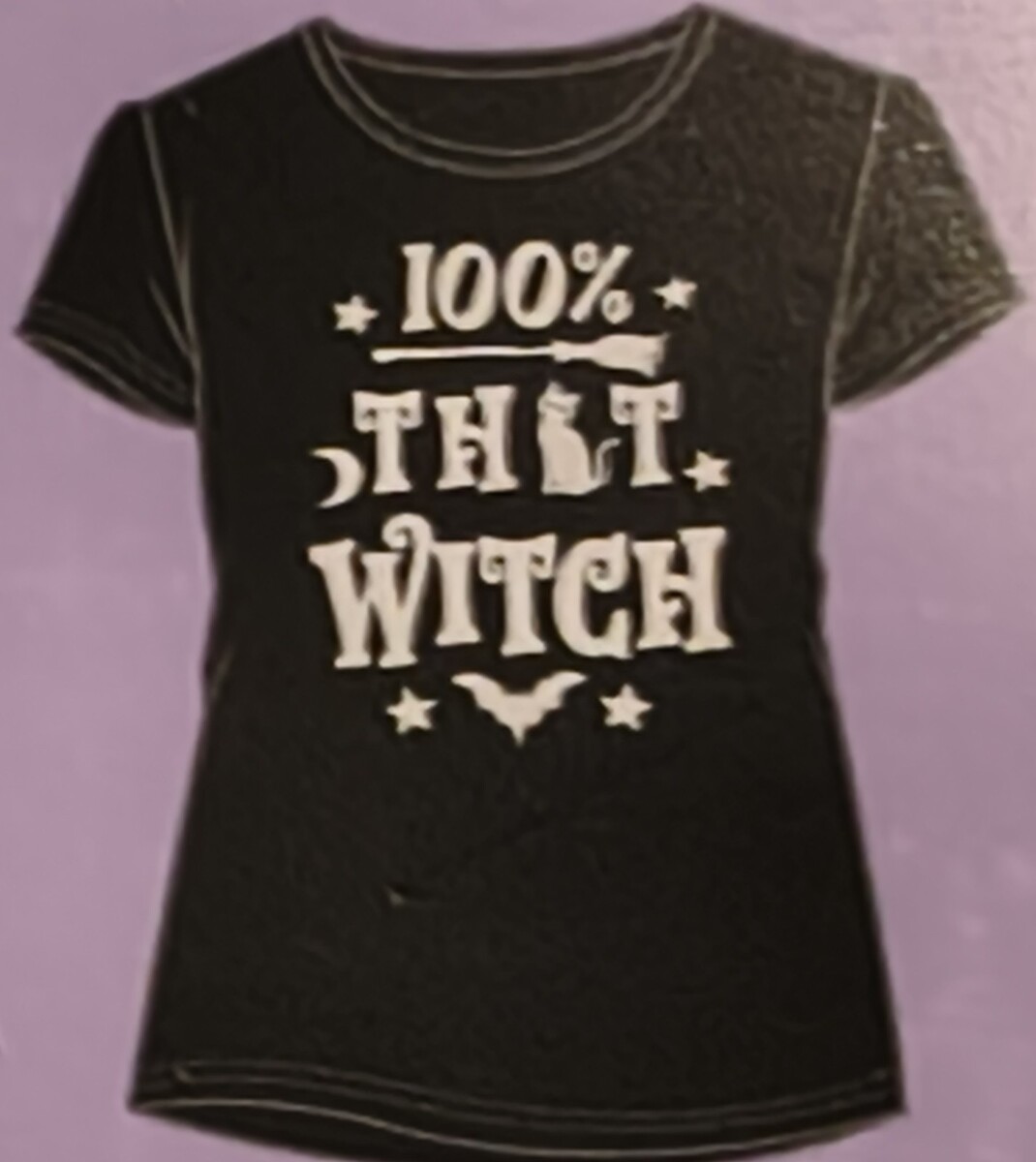 100% That Witch Women’s Halloween T-shirt Size Large Black & White V-neck