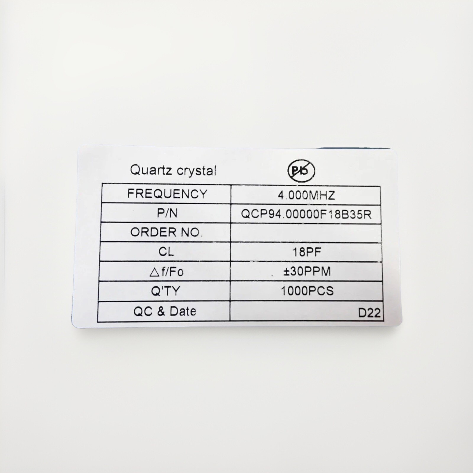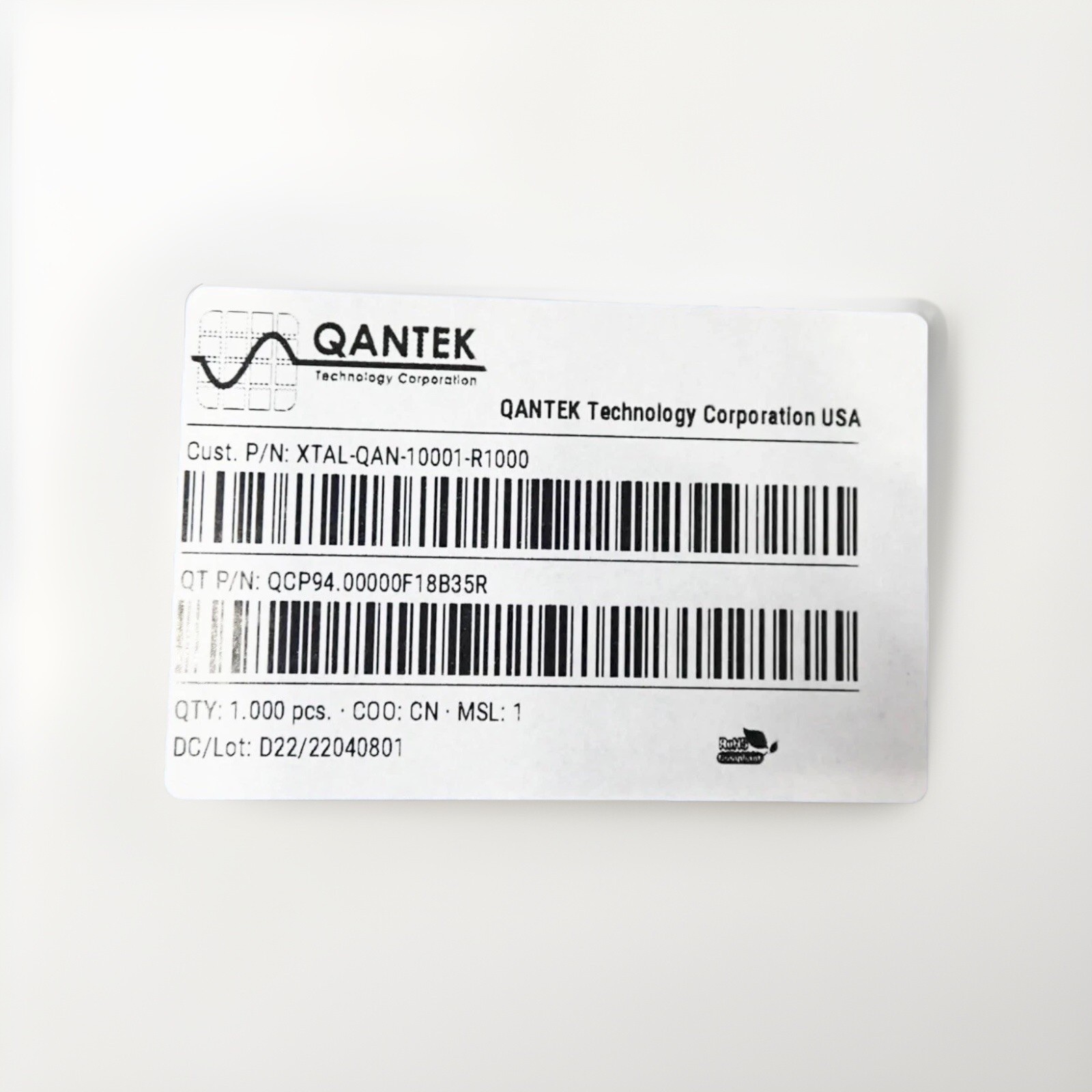 - 1000 Qantek QCP94.00000F18B35R Crystal Oscillators QCP Series 4MHz +/-30ppm 4Pin
