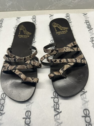 - 10022-SHOE Saks Fifth Avenue Womens Brown Snakeskin Slip On Flats Sz 8 M