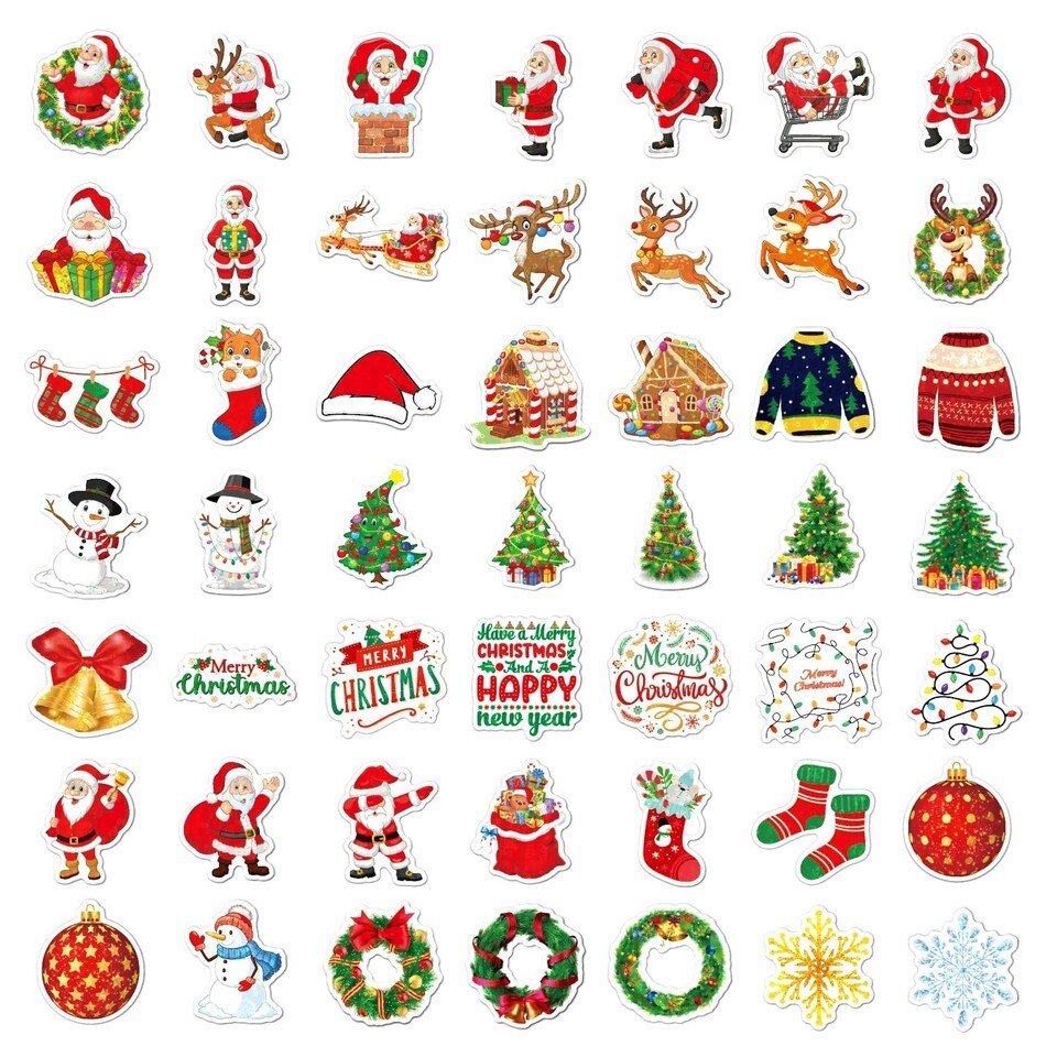 100PCS Christmas Children's Cartoon Santa Claus Tree Waterproof Stickers