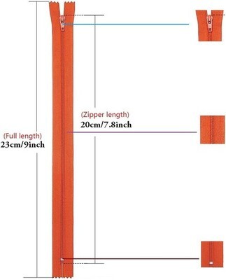 Uniform size : 0.98 inch/2,5 cm of width, 9 inch/23 cm of length and there are about 1.18-1.57 inch / 3-4 cm without zipper teeth for easy sewing.