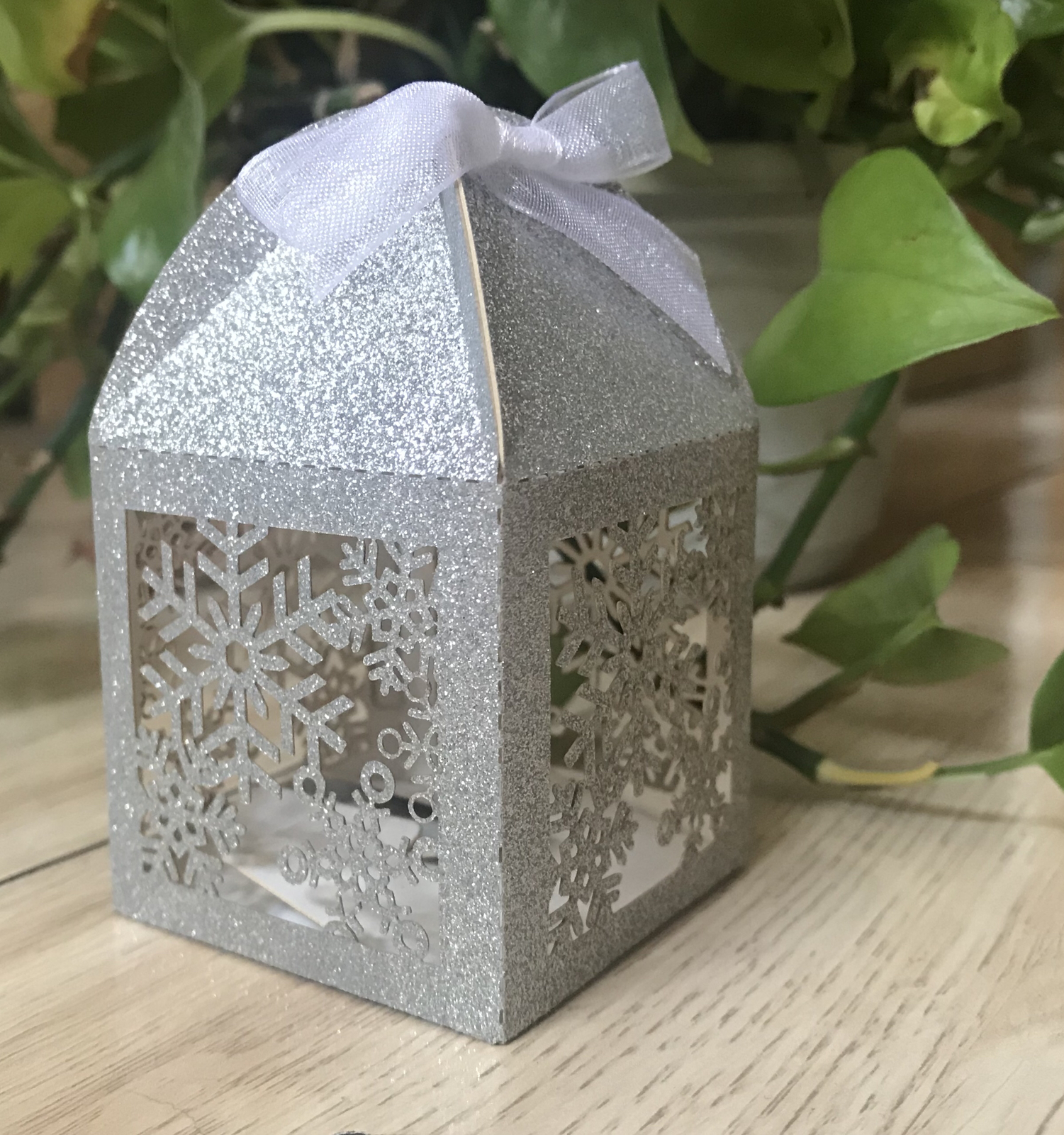 - 100pcs Snowflake Laser Cut Wedding gift Box,Candy Box Chocolate Box with Ribbon