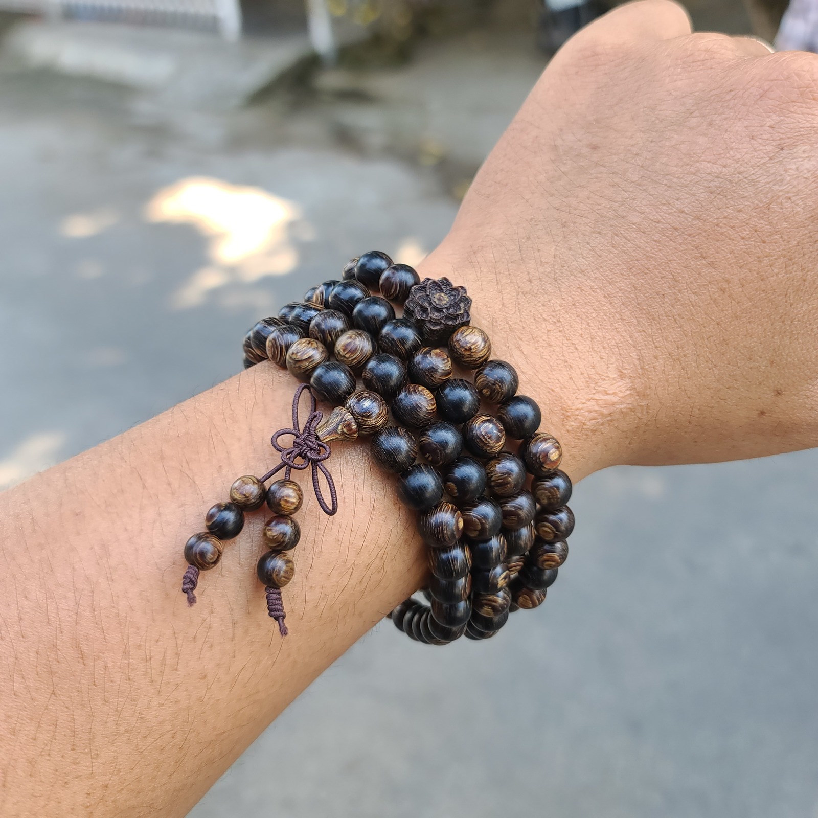 - 108 Bead Sunken Agarwood Bracelet – Lotus Charm, Natural Scent, 6–8mm Sizes
