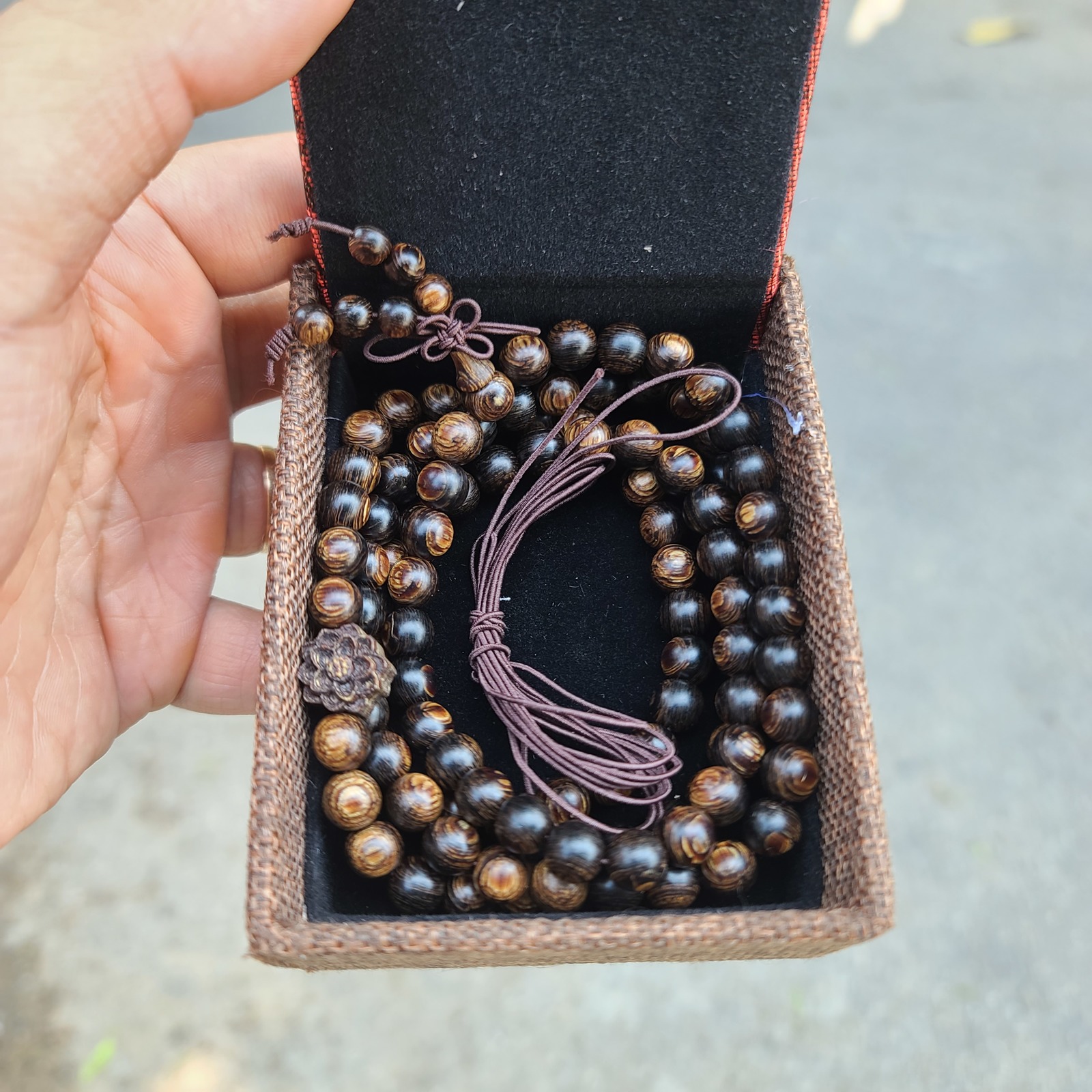 108 Bead Sunken Agarwood Bracelet – Lotus Charm, Natural Scent, 6–8mm Sizes