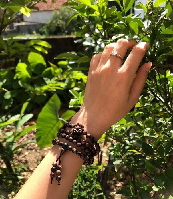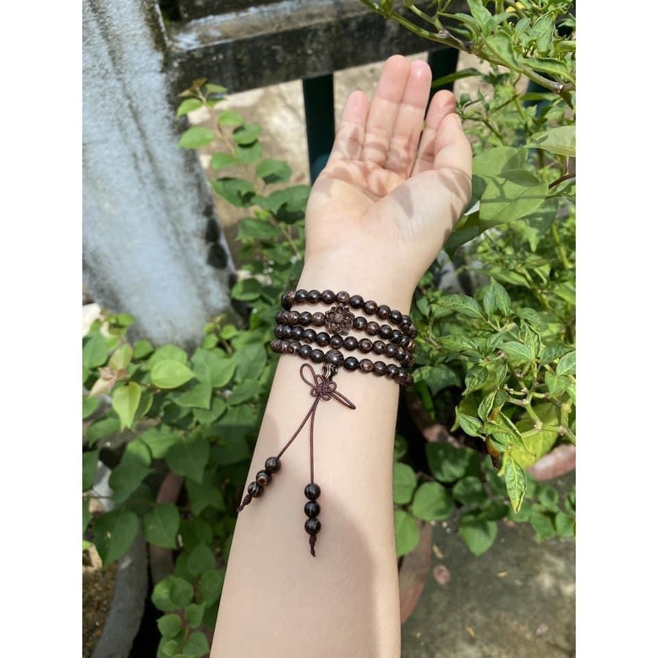 This 108-bead Sinking Agarwood Bracelet is handcrafted from premium high-oil agarwood layers ("Sánh Chìm") – known for its rich, long-lasting scent and natural energy. Each bracelet is made from carefully selected wood with a warm, earthy tone that may vary slightly due to the uniqueness of each agarwood batch.