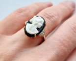 10K YELLOW GOLD 17 x 11 mm CAMEO DIAMOND ACCENT ANTIQUE RING 3.1 GRAM SIZE 6.5