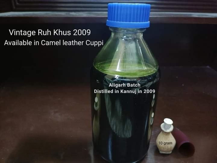 Vintage Ruh Khus (Wild Vetiver Oil) from Aligarh, distilled in Kannuj in 2009 by desi degh Bapka method