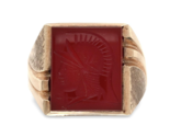 - 10k Yellow Gold Men's Genuine Carnelian Warrior Intaglio Ring Size 10 (#J7316)