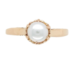 10k yellow gold Victorian pearl ring. The genuine saltwater Akoya cultured pearl measures 5.5mm. The ring fits a size 6.75 finger and weighs 1.24 dwt. It dates from about 1900. Absolutely beautiful!