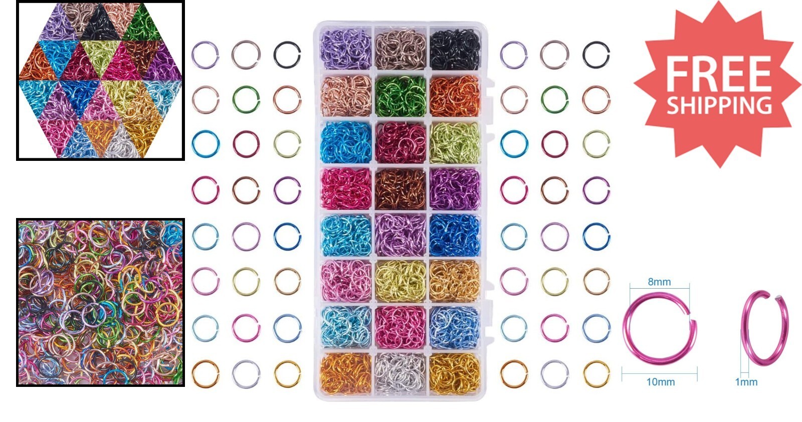 10mm Aluminum Jump Rings - 2400pcs in 24 Colors for Stunning Jewelry Creation