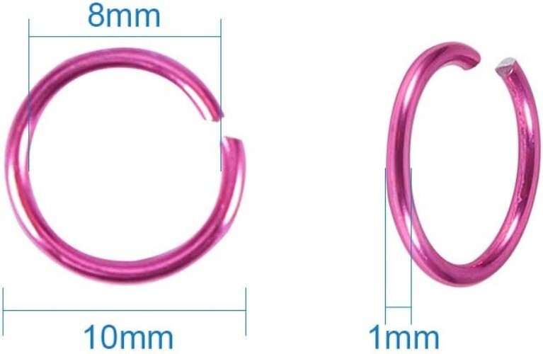 Discover our set of approximately 2,400 aluminum jump rings, ideal for jewelry making and crafts. Each ring measures about 10mm in diameter, 1.0mm thick, with an 8mm inner diameter. Crafted from soft yet durable aluminum, these rings are available in 24 vibrant colors, including pink, blue, yellow, orange, red, purple, silver, and green?offering you ample choice for your DIY projects.