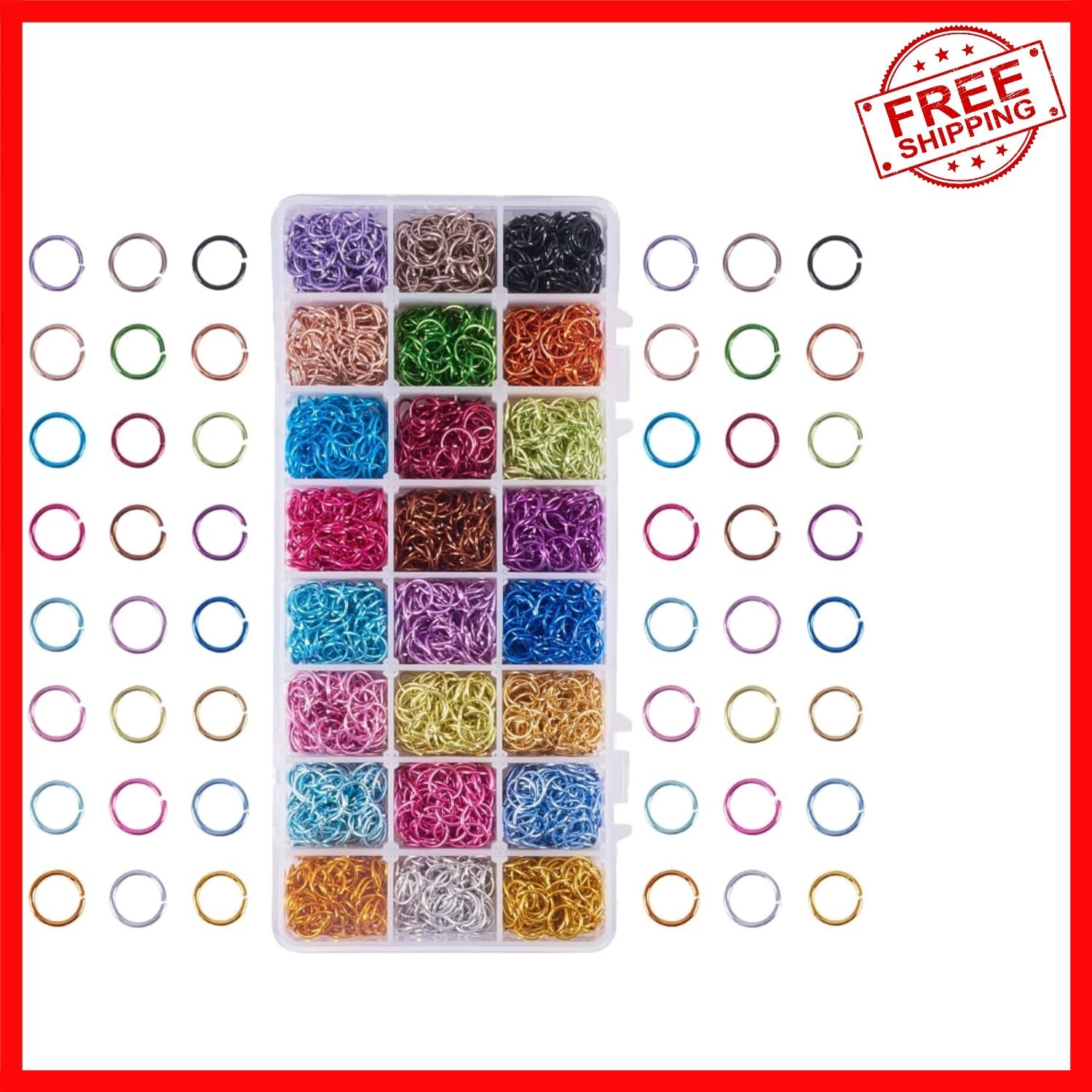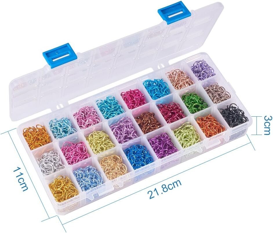 The assortment comes neatly organized in a plastic container with 24 dividers, ensuring easy access and safe storage of all pieces. Perfect for creating jump ring necklaces, bracelets, anklets, or even mail armor, these versatile rings enhance any jewelry or craft project.