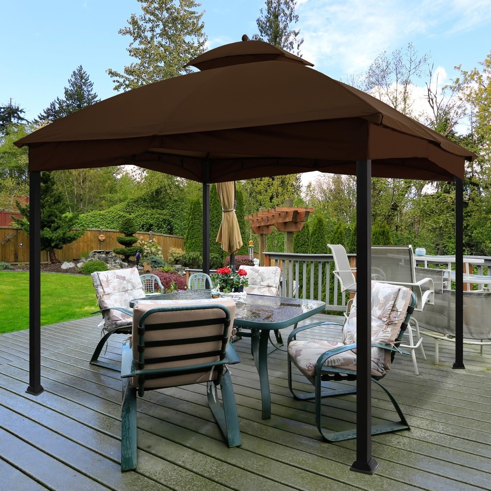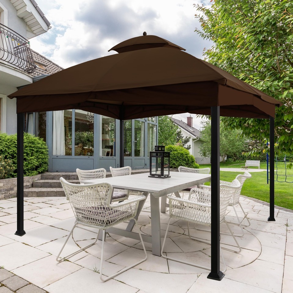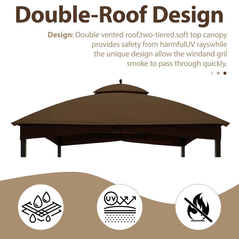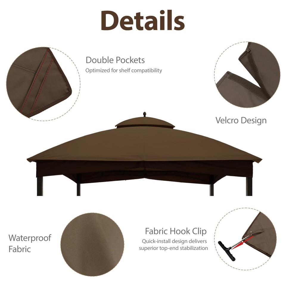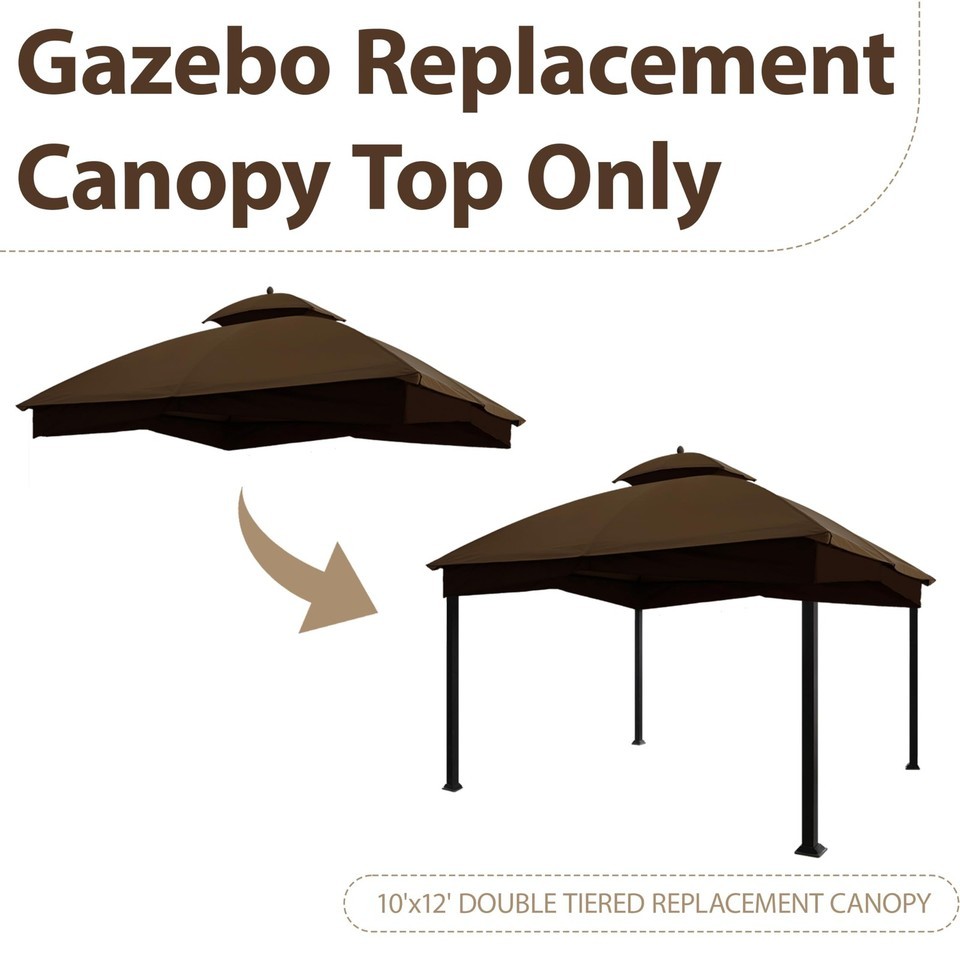 10x12 Replacement Canopy Top for Lowe?s Allen Roth Gazebo GF-12S004B-1 ? Double-Tier Waterproof Roof Cover with T-Hook System, Brown