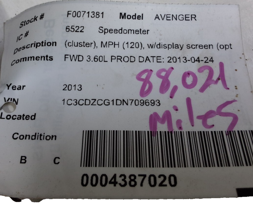 2011 to 2014 Dodge avenger MPH speedometer. 88,021 miles.