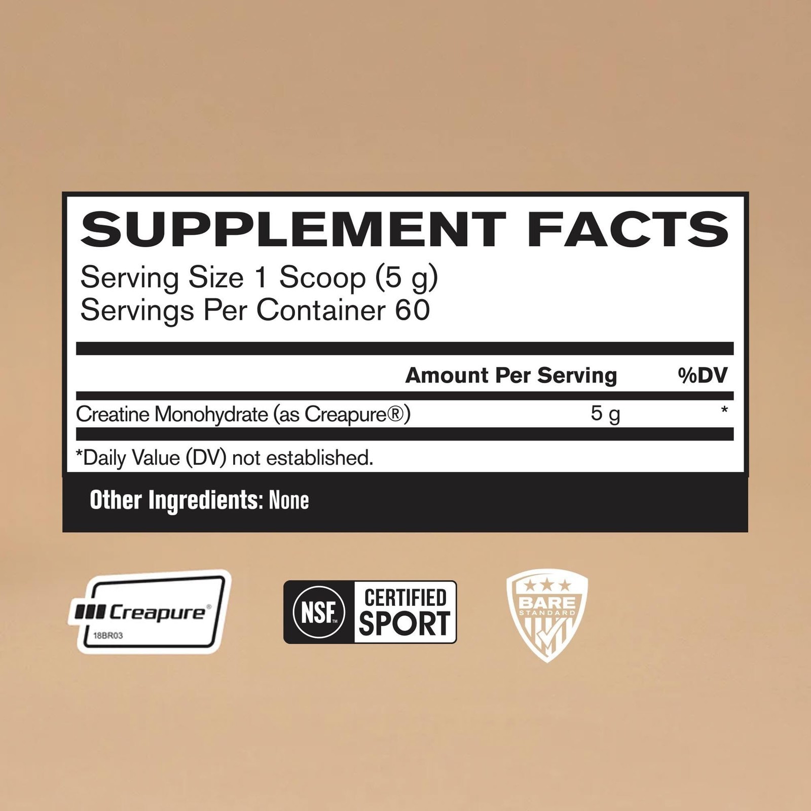 Expiration Date of 11/2026 ? BPN CREATINE MONOHYDRATE: Sourced from Creapure, supports an increase in strength, power output and building lean muscle. Creapure is the most widely studied form of creatine and is proven to be safe and effective. Unflavored - 60 Servings ? PRIMARY BENEFITS: Creapure is the brand name for pure creatine monohydrate produced by AlzChem Trostberg GmbH in Germany. It supports regenerating the energy source used by the muscles, ATP, to increase endurance, strength and muscle mass ? PERFORMANCE FOR ALL: Creatine isn?t just for Bodybuilders and Fitness Athletes. It is the perfect supplement for sports that require repeated bursts of maximum power ? Soccer, Basketball, Football, Baseball, Hockey, Swimming, Track and Field, etc. ? THIRD-PARTY TESTED FOR BANNED SUBSTANCES: Every batch of Informed Sport certified products are tested for prohibited substances ensuring you feel comfortable when consuming the product ? BARE PERFORMANCE NUTRITION: We are a team of driven leaders who are passionate about helping others reach their highest levels of fitness with training, nutrition, and supplementation. We live and train behind the motto, "GO ONE MORE"